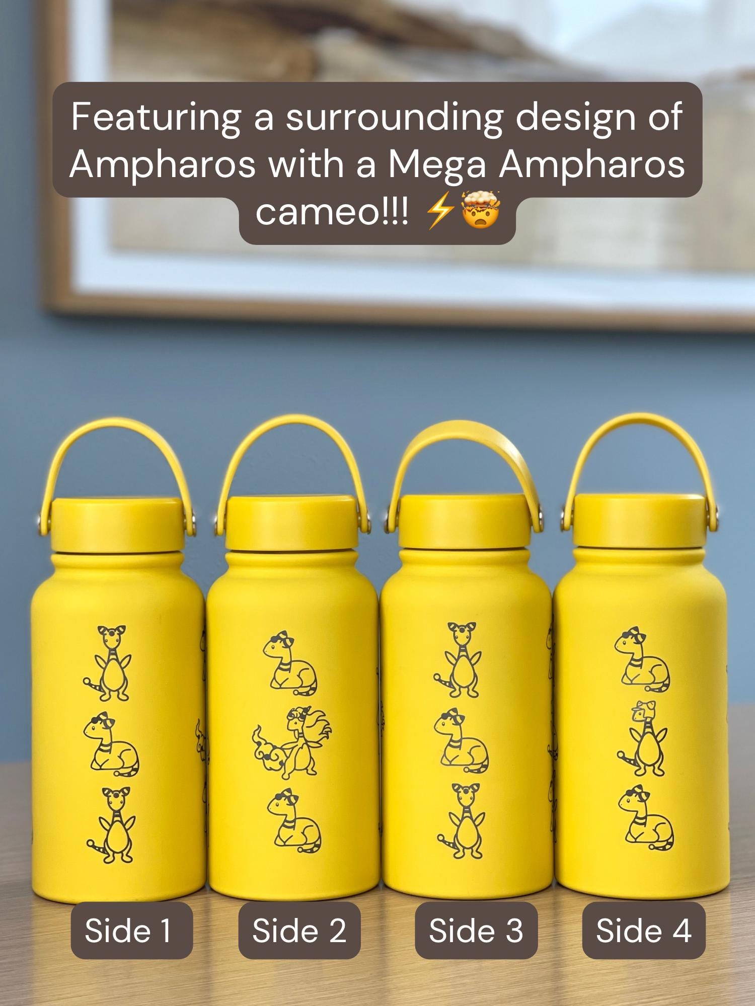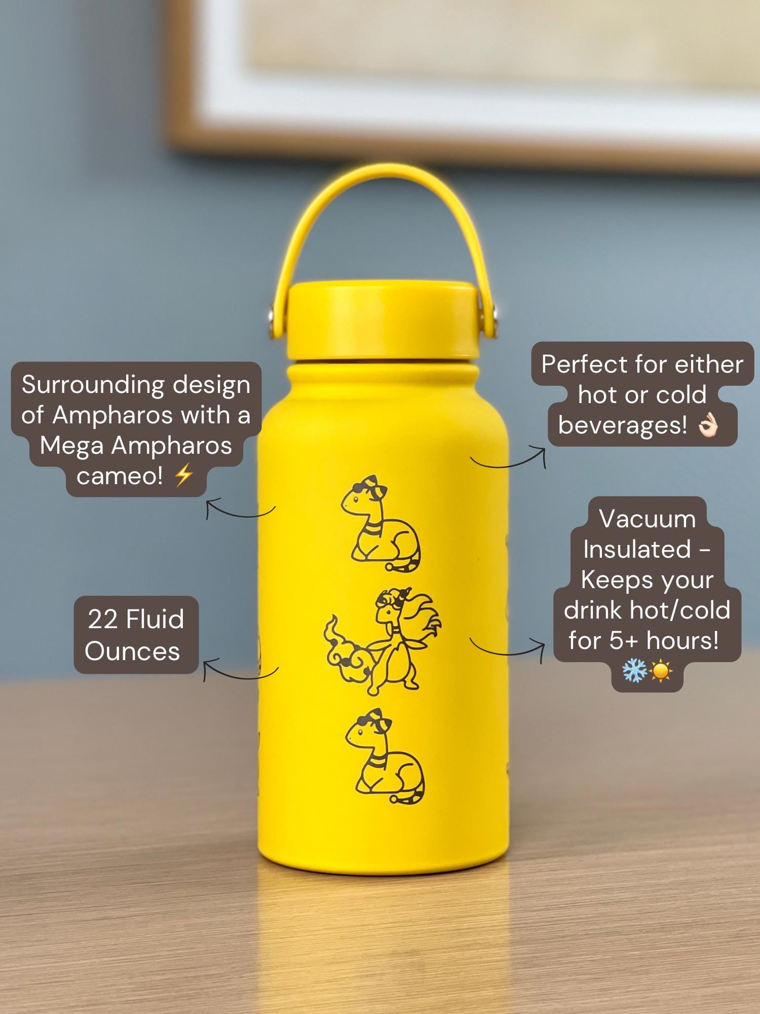 Ampharos Water Bottle Engraved Coffee Tumbler, Mega Ampharos & Scooter Hat Waterbottle Thermos Flask, Electric Johto Anime Fan Birthday Gift