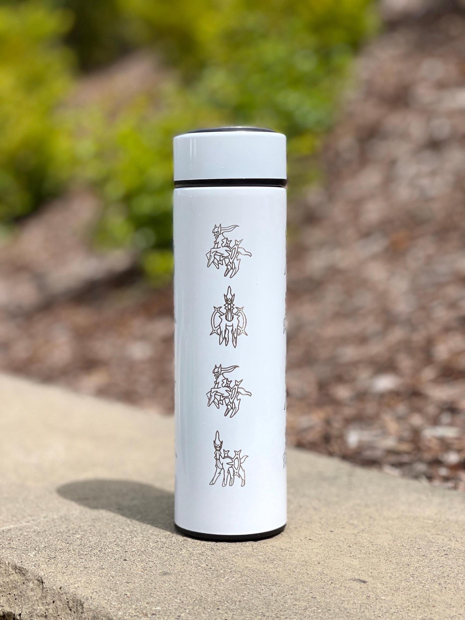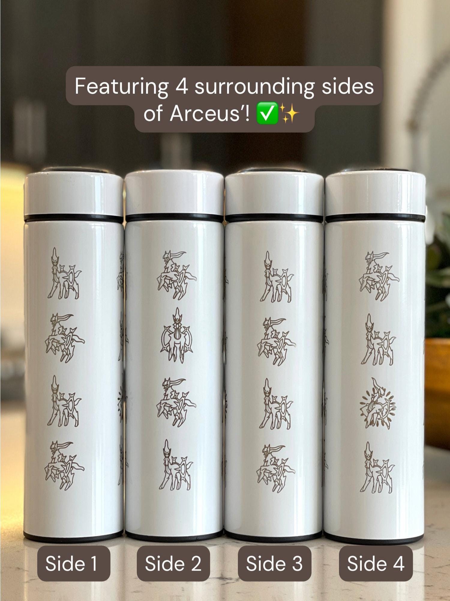 Arceus Coffee Tumbler Waterbottle with Tea Infuser, Sinnoh Legendary Legends Mythical Water Bottle, Anime Fan Travel Mug Flask Gift