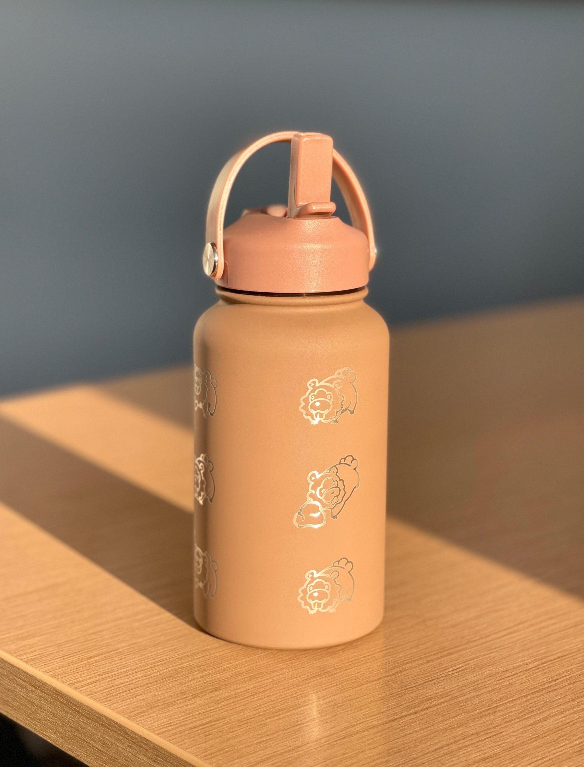Bidoof Water Bottle Engraved Straw Waterbottle Coffee Tumbler, HM Slave Rock Smash Cut, Funny Meme Anime Fan Travel Mug Cup Drink Gift