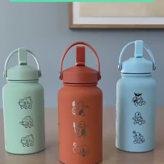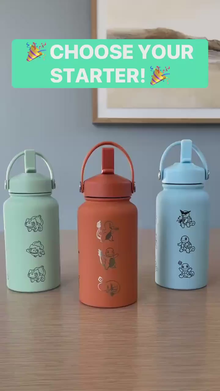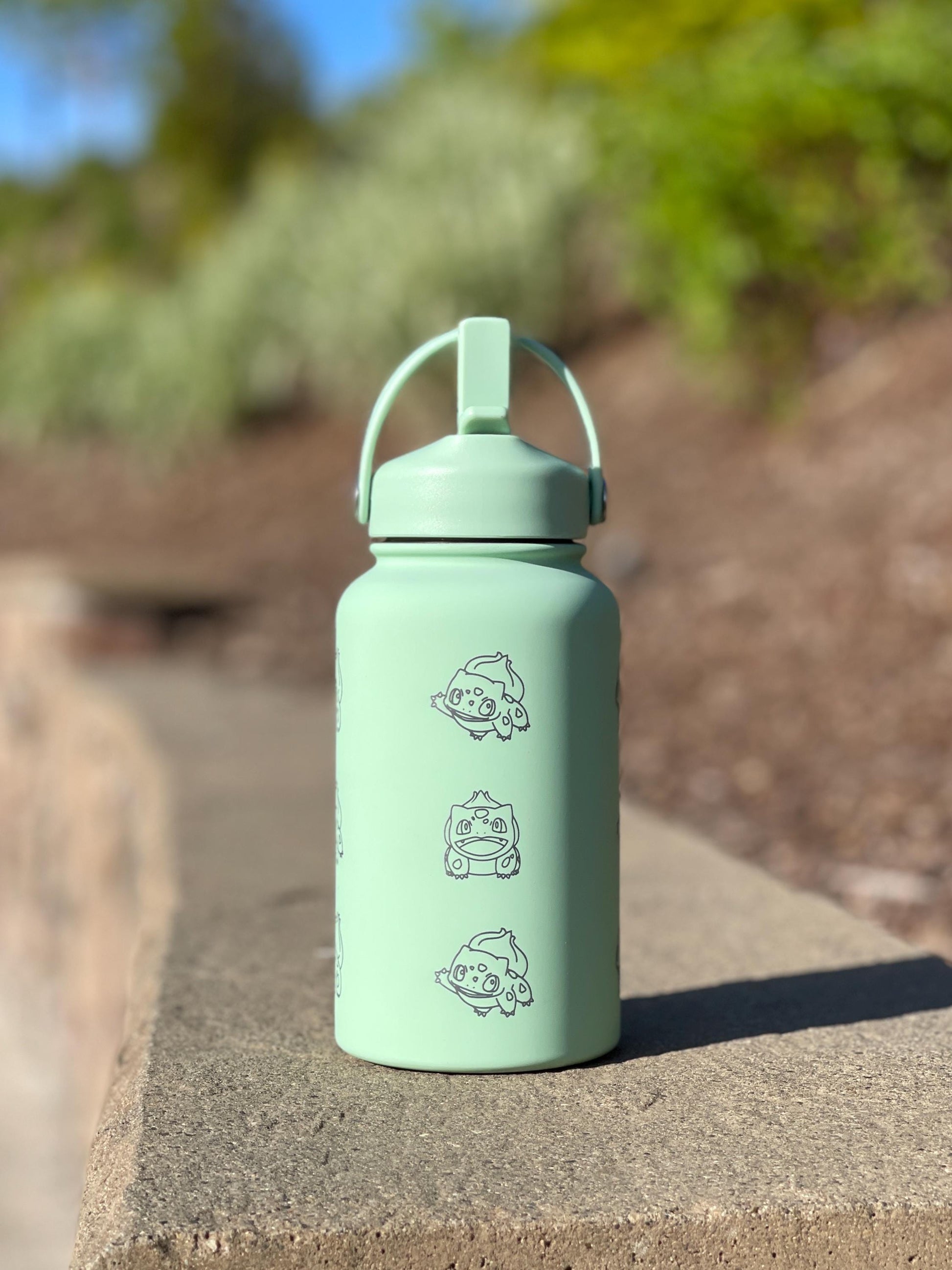 Bulbasaur Water Bottle Engraved Coffee Tumbler, Grass Kanto Starter Waterbottle Thermos Travel Mug Flask, Anime Fan Birthday Gift