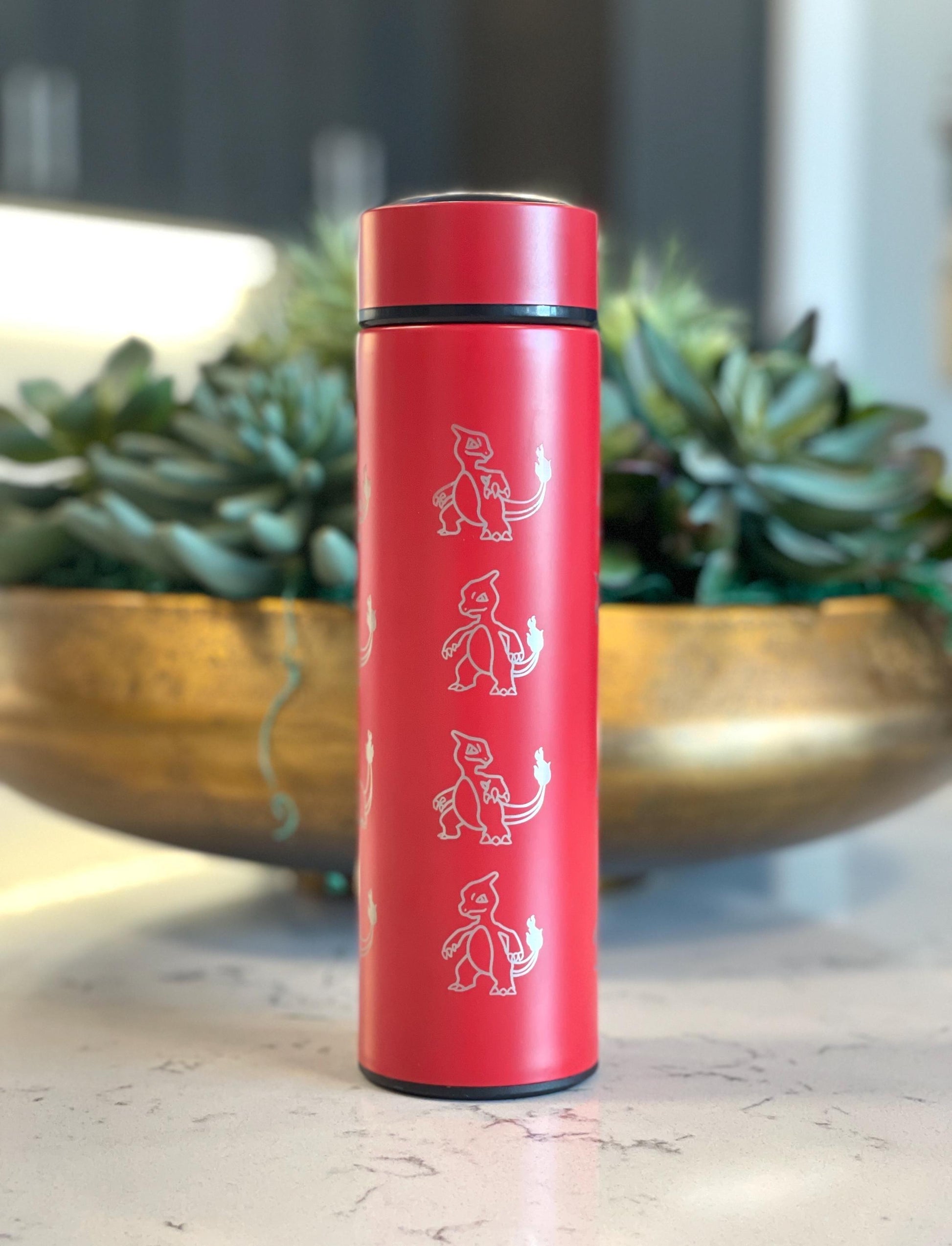 Charmeleon Coffee Tumbler Waterbottle Tea Infuser with Sleeping Charmeon Travel Mug Thermos, Charmander Evolution Anime Fan Birthday Gift