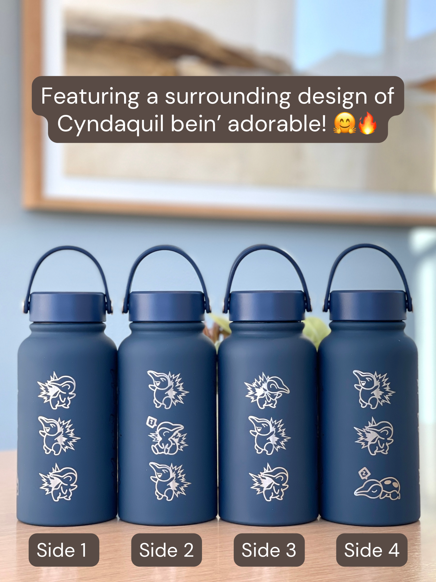 Cyndaquil Water Bottle Engraved Water Bottle with Mystery Dungeon Scarf & Sleeping Cyndaquil, Johto Fire Starter Coffee Tumbler Travel Mug, Gamer Anniversary Gift