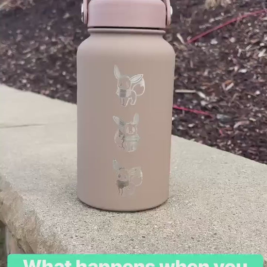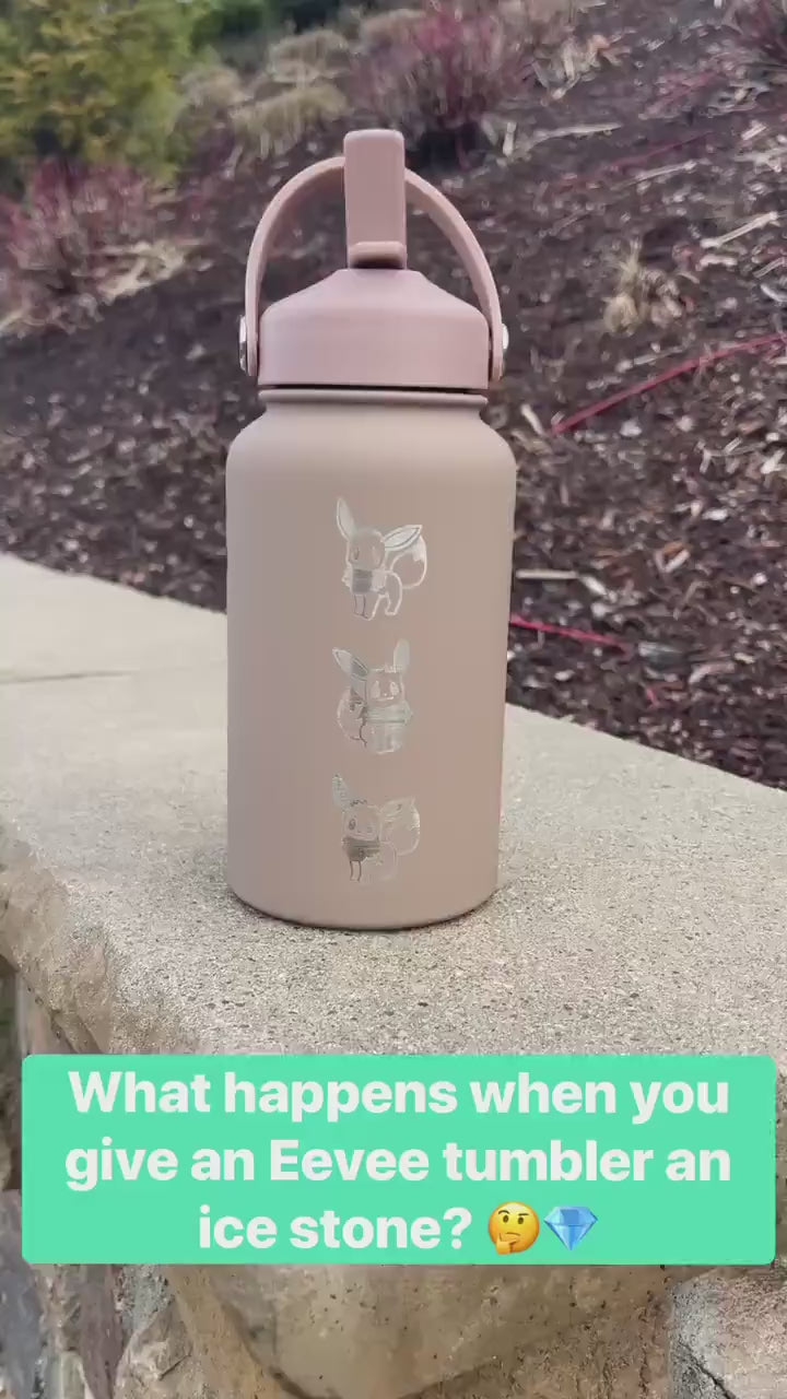 Glaceon Water Bottle Engraved Coffee Tumbler with Ice Beam Glaceon & Unite Costume Waterbottle, Eeveelution Anime Fan Anniversary Gift