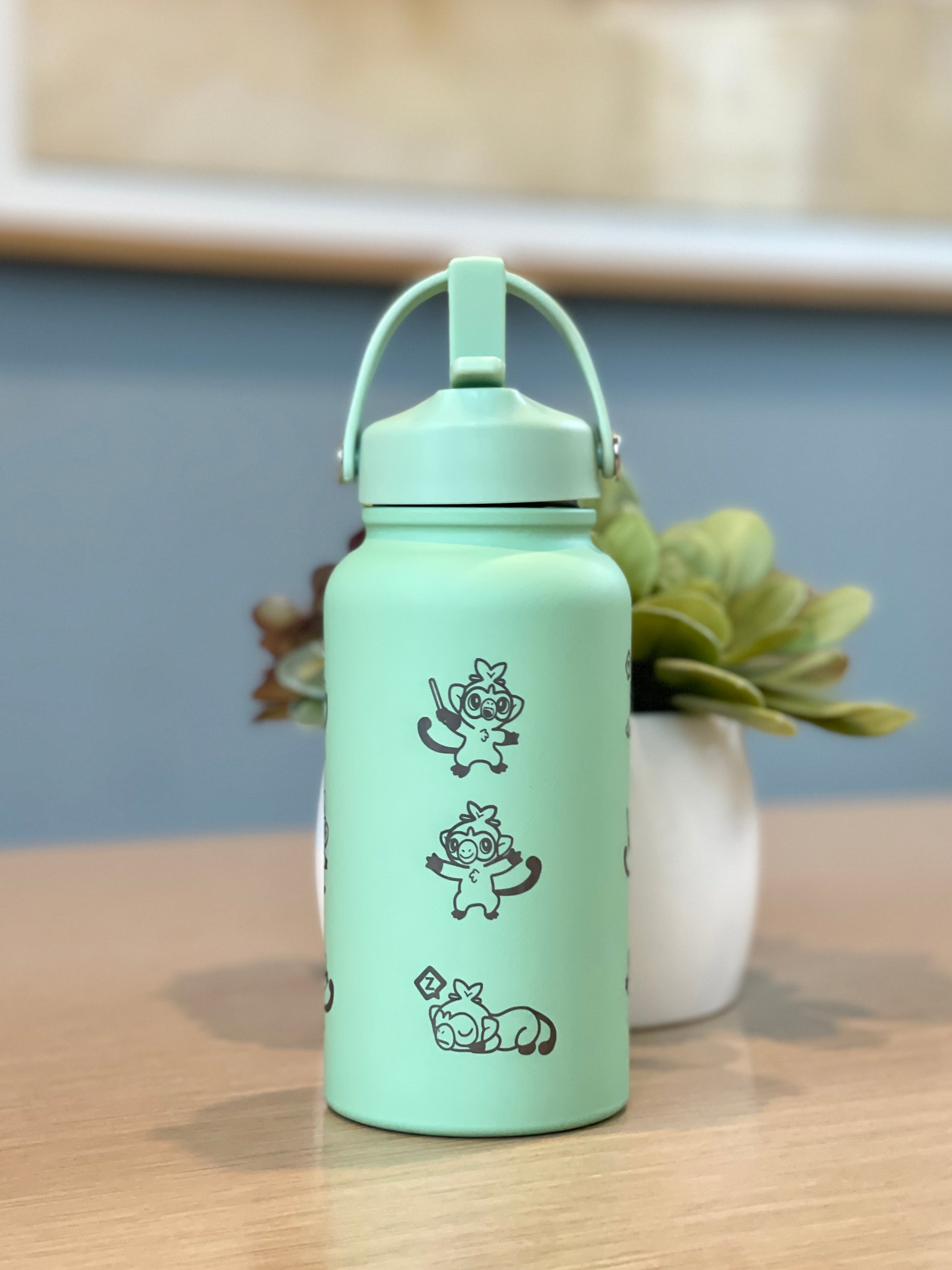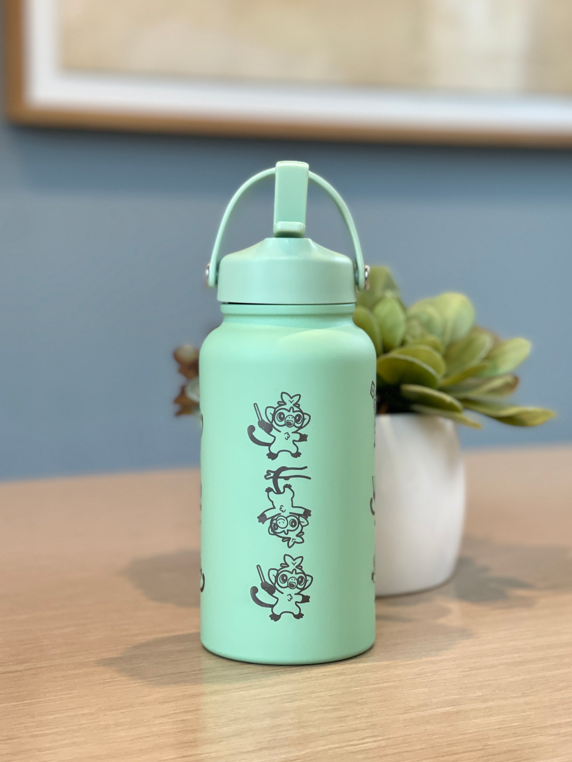 Grookey Water Bottle Engraved Coffee Tumbler with Sleeping & Angry Grookey, Grass Starter Thermos Anime Fan Birthday Gift