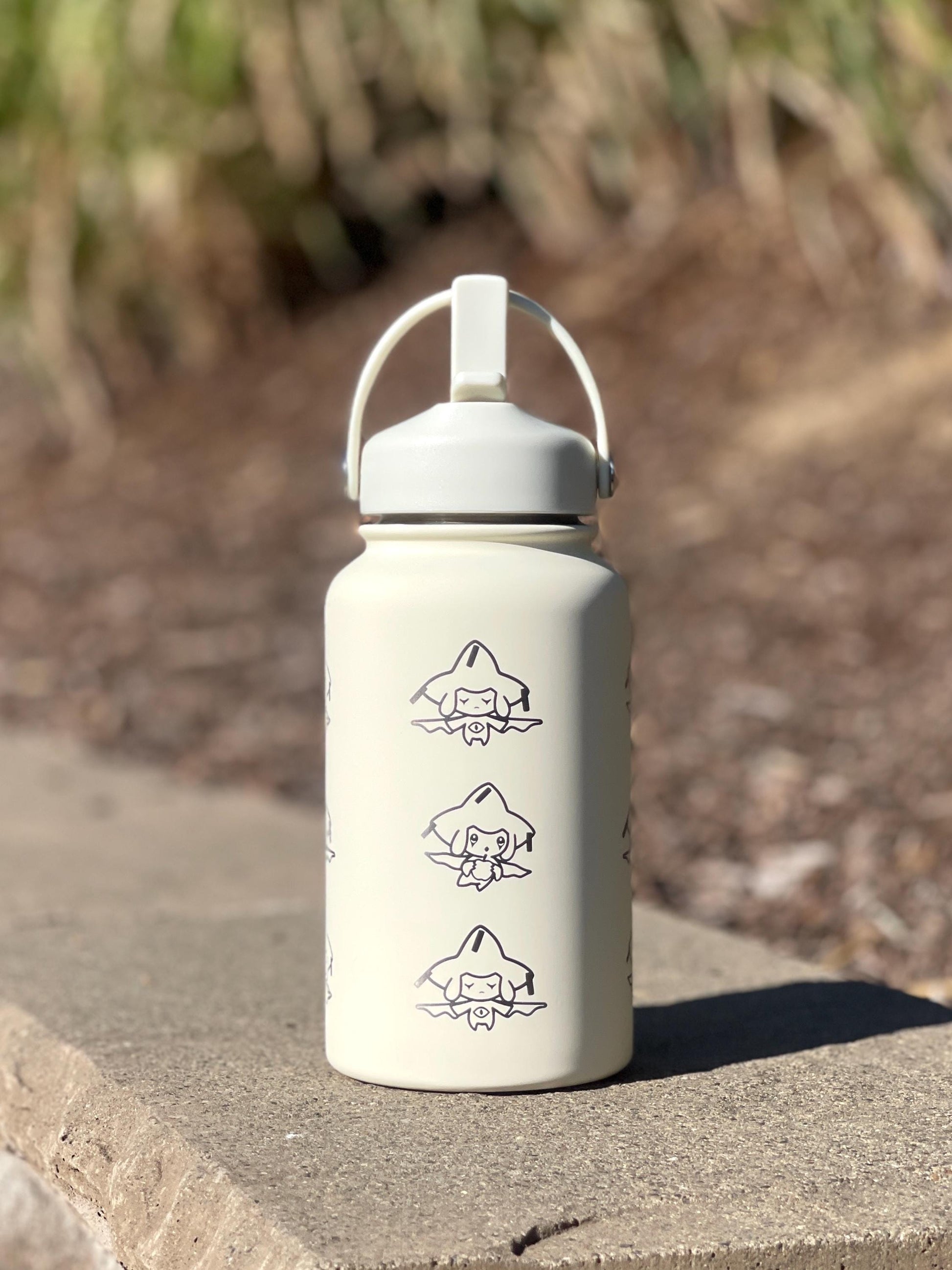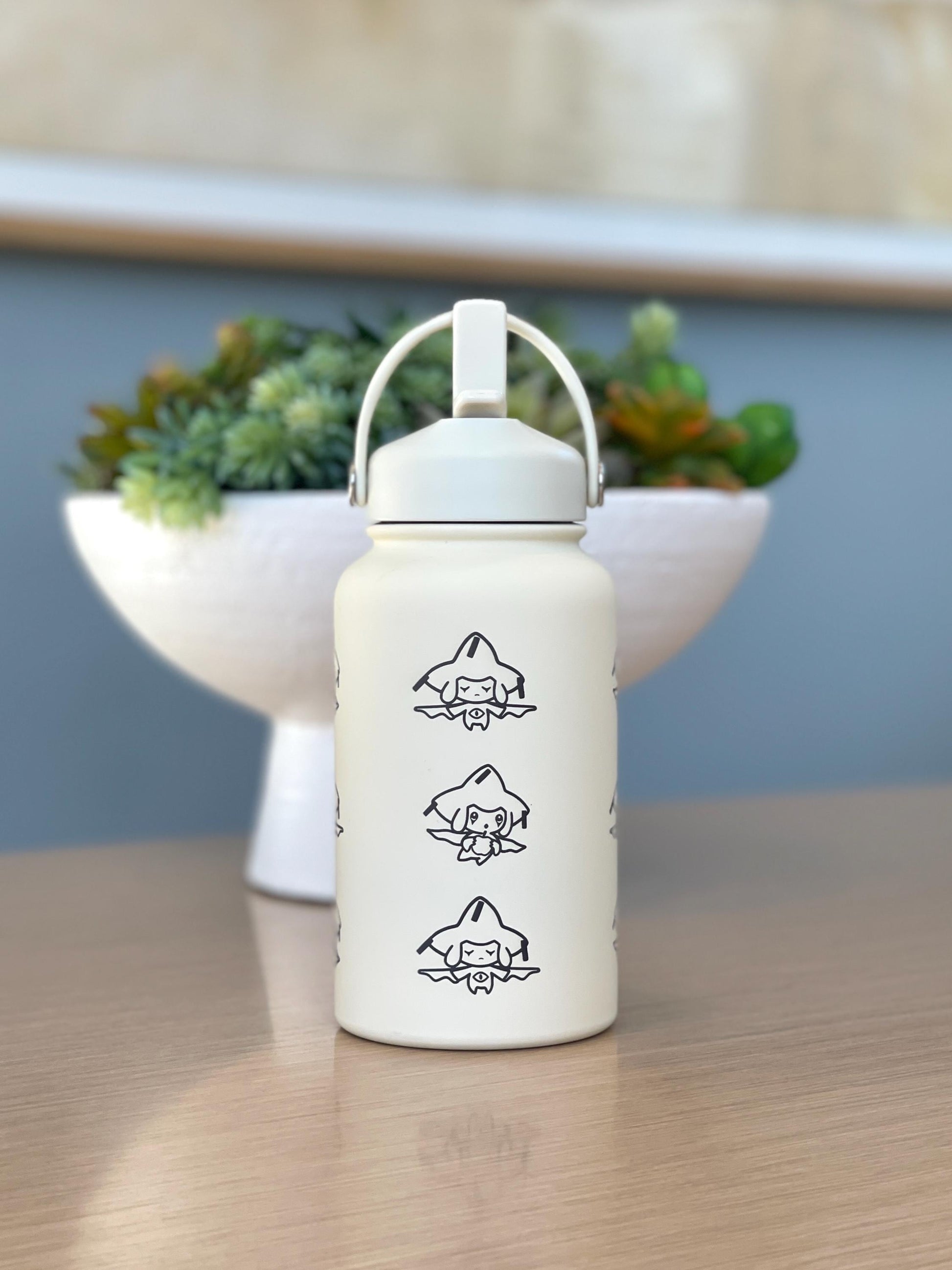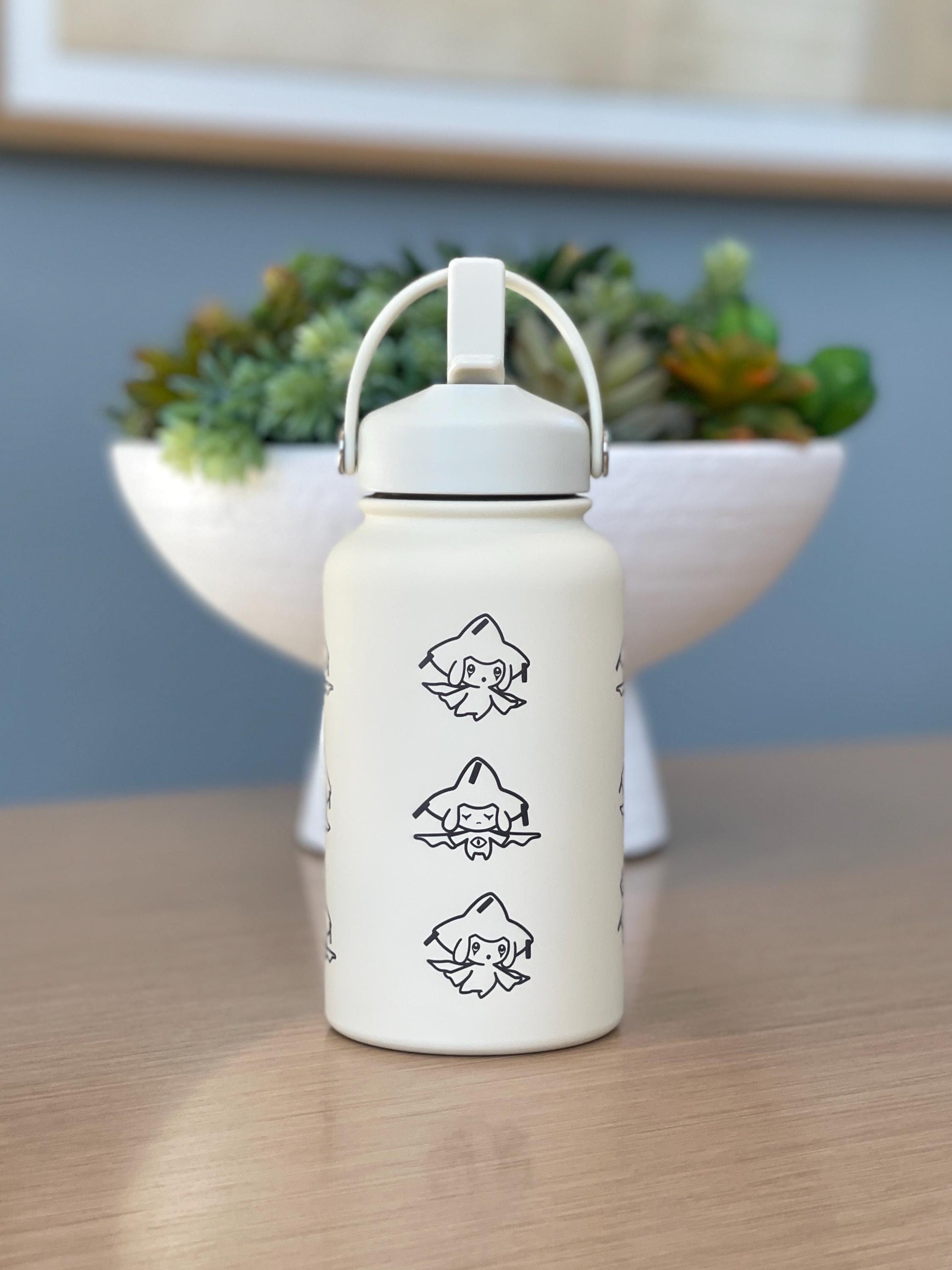 Jirachi Water Bottle Engraved Coffee Tumbler with Sleeping & Apple Jirachi, Hoenn Mythical Waterbottle Travel Mug Anime Fan Birthday Gift