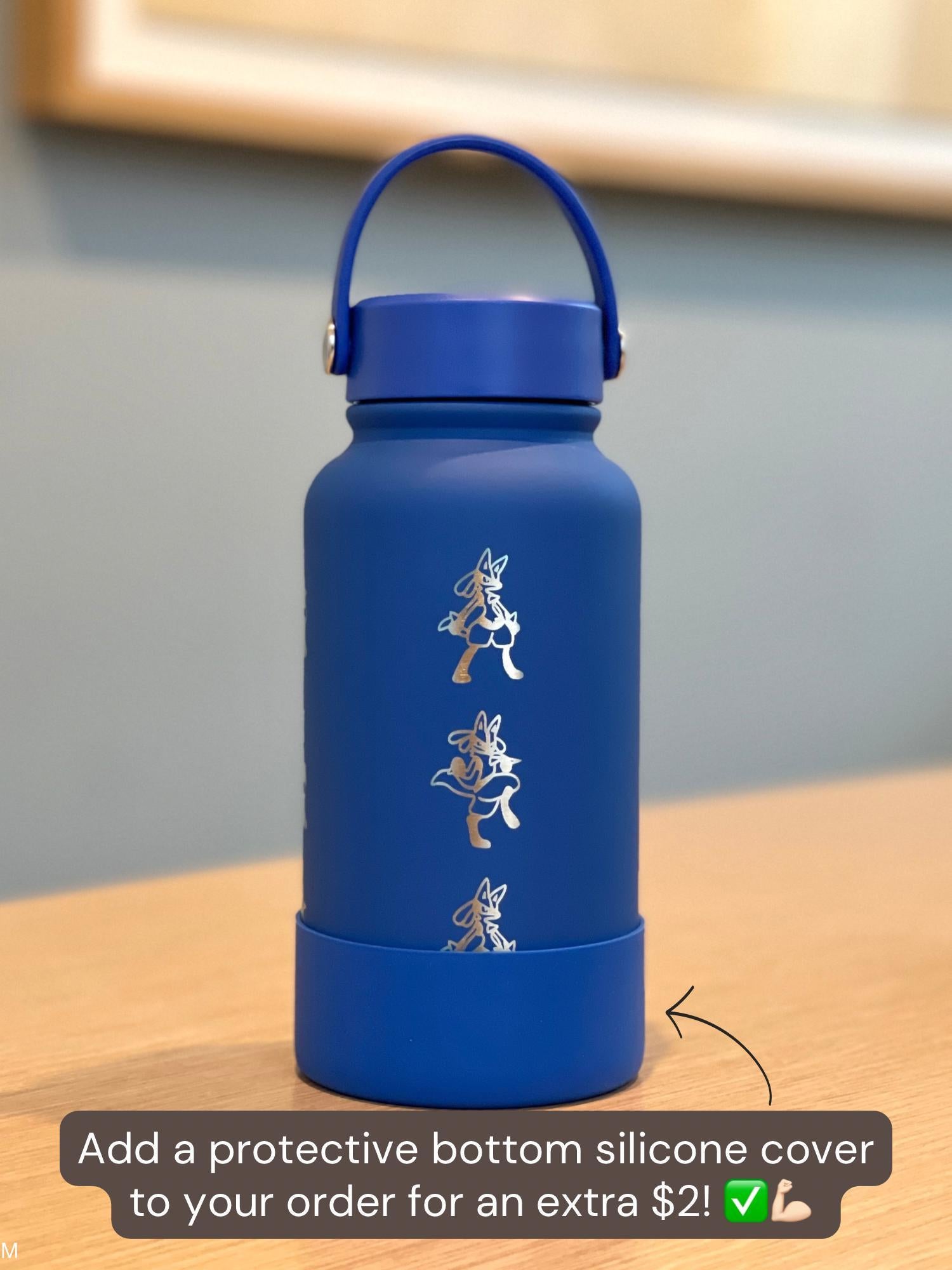 Lucario Water Bottle Engraved Coffee Tumbler with Mega Lucario and Aura Sphere, Tea Thermos Waterbottle, Sinnoh Anime Fan Birthday Gift
