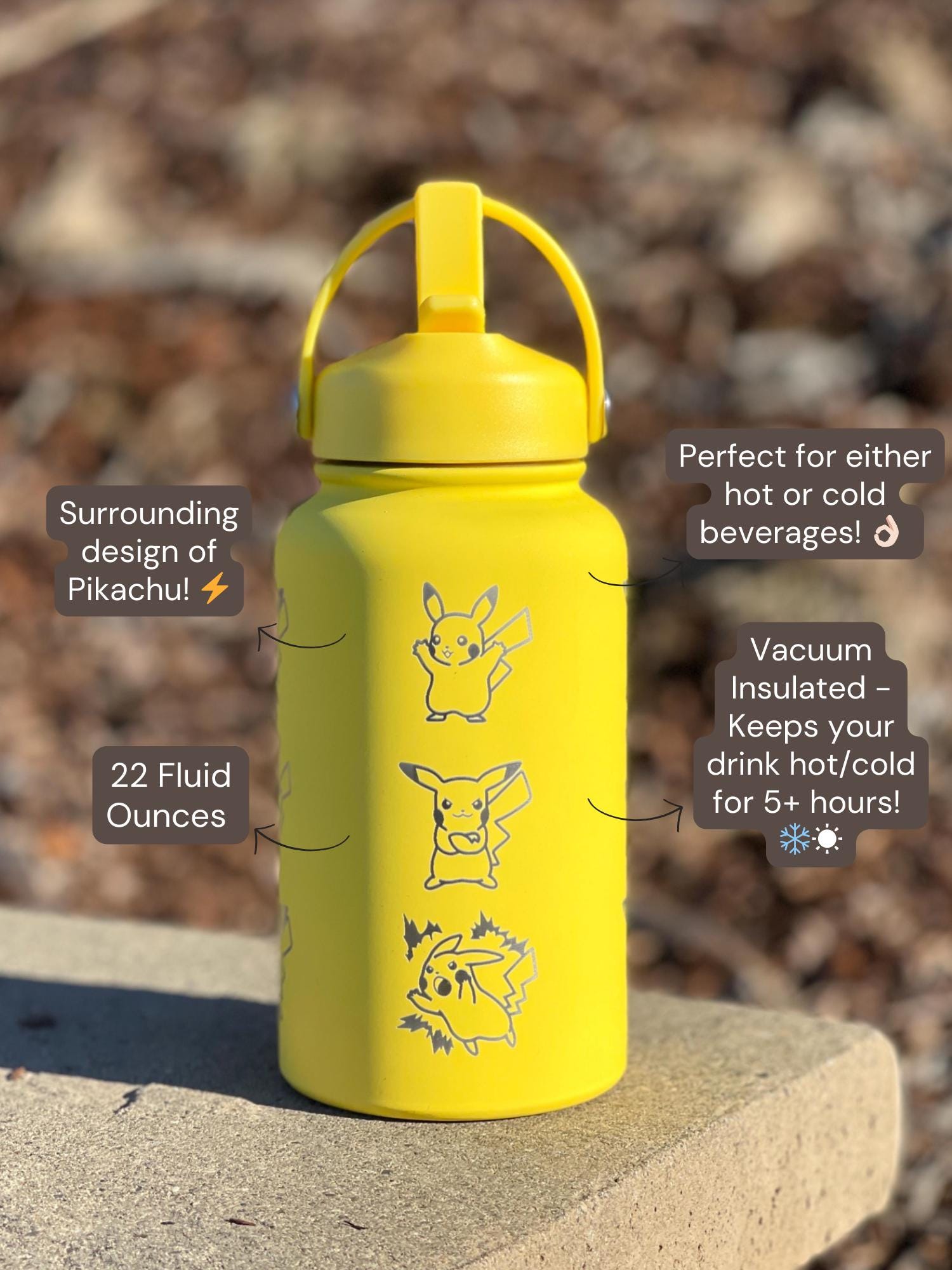 Pikachu Water Bottle with Captain & Detective Pikachu Volt Tackle, Engraved Waterbottle Coffee Tumbler Thermos, Anime Fan Birthday Gift