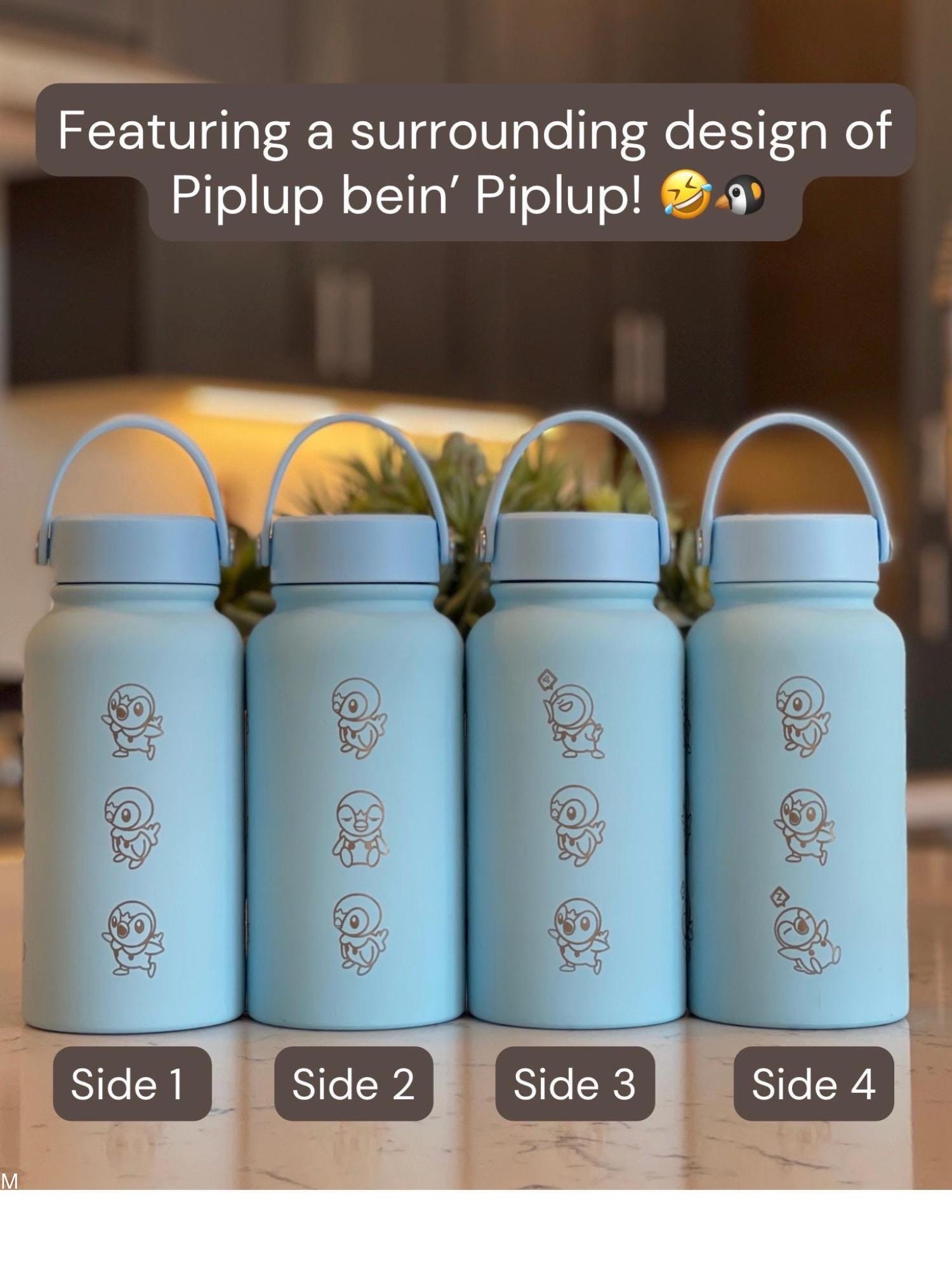 Piplup Water Bottle Engraved Tumbler Thermos, Sinnoh Starter Penguin Anime Gamer Waterbottle, Birthday Tea Coffee Flask Gift For Men Boys