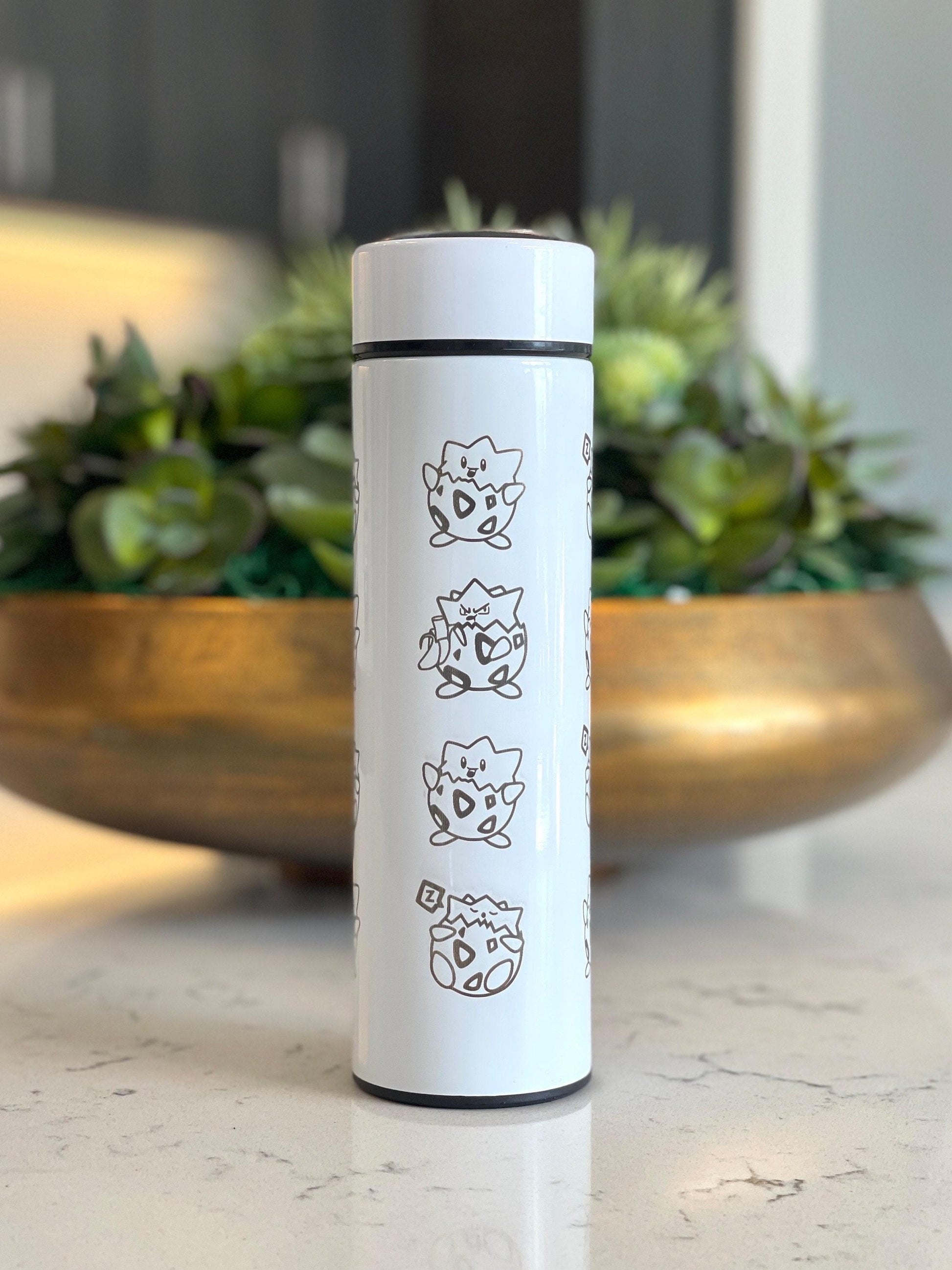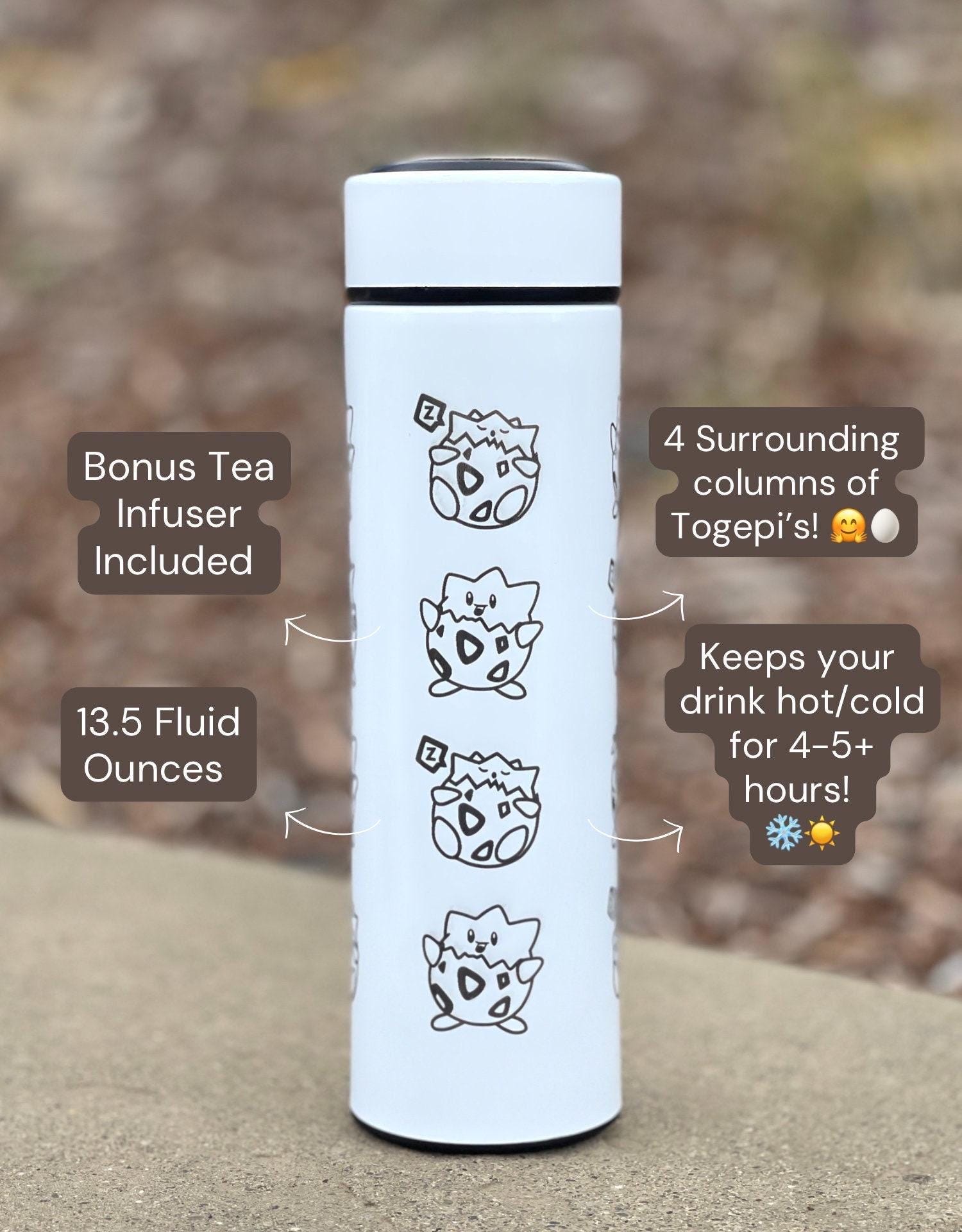Togepi Engraved Coffee Tumbler with Tea Infuser, Crying & Angry Togepi with Banana, Funny Cute Anime Waterbottle Travel Mug Gift