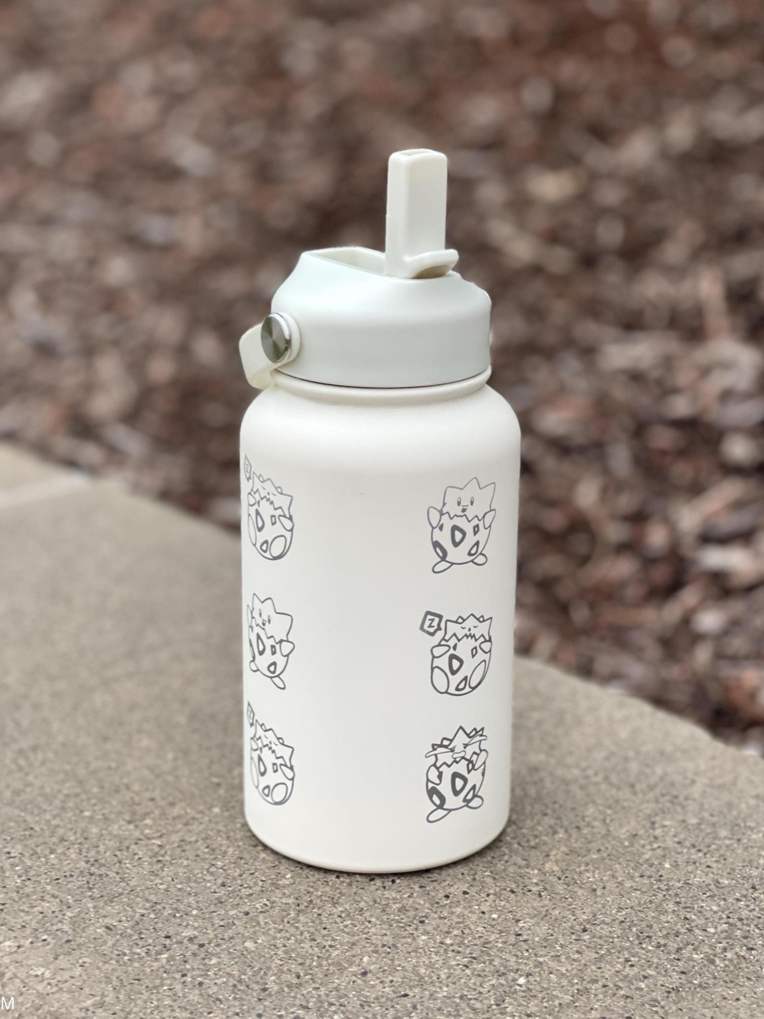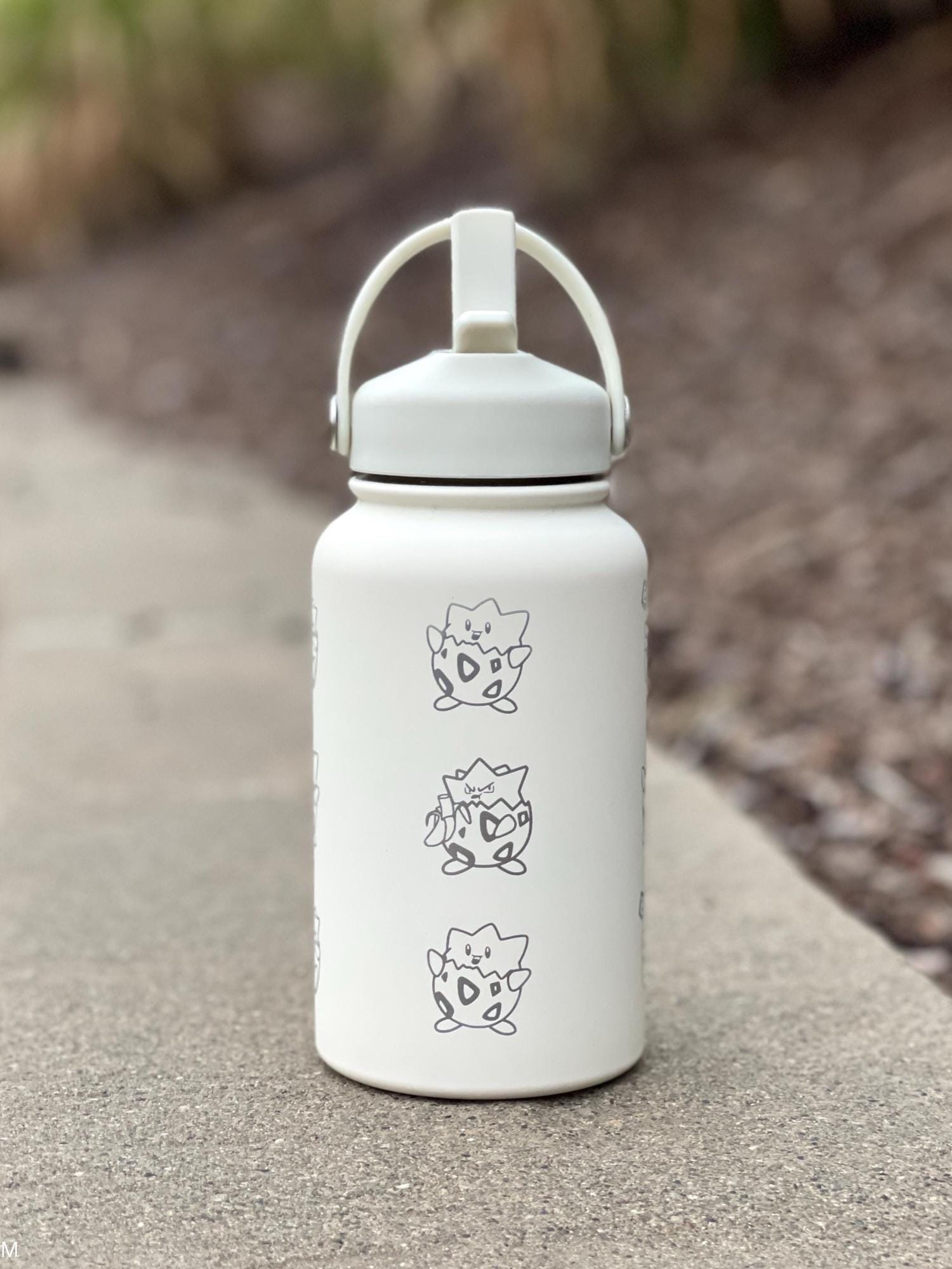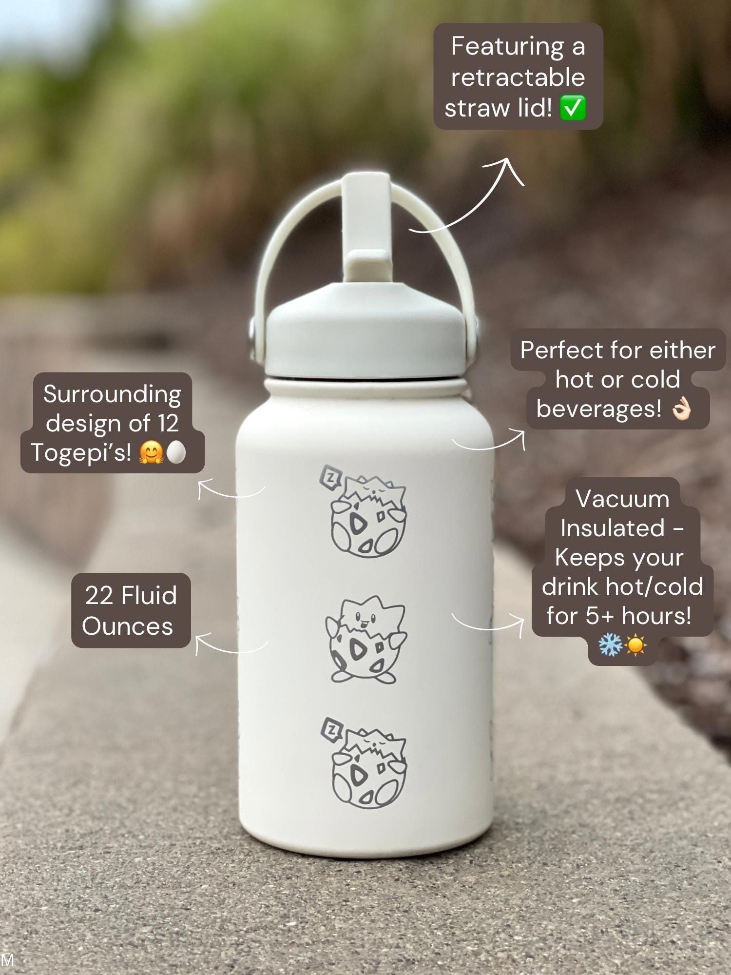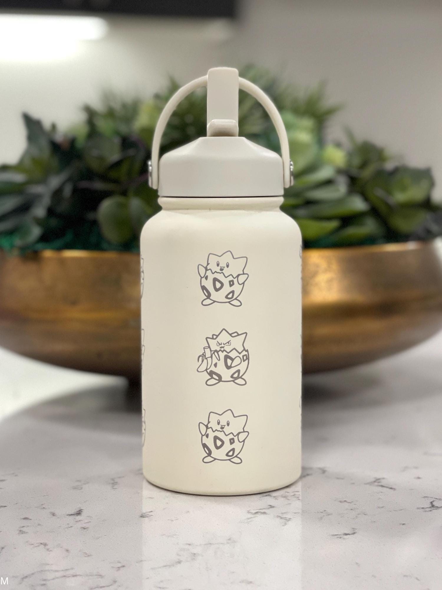 Togepi Straw Waterbottle Engraved Coffee Tumbler, Crying & Angry Togepi with Banana Egg Water Bottle, Anime Travel Mug Cup Birthday Gift