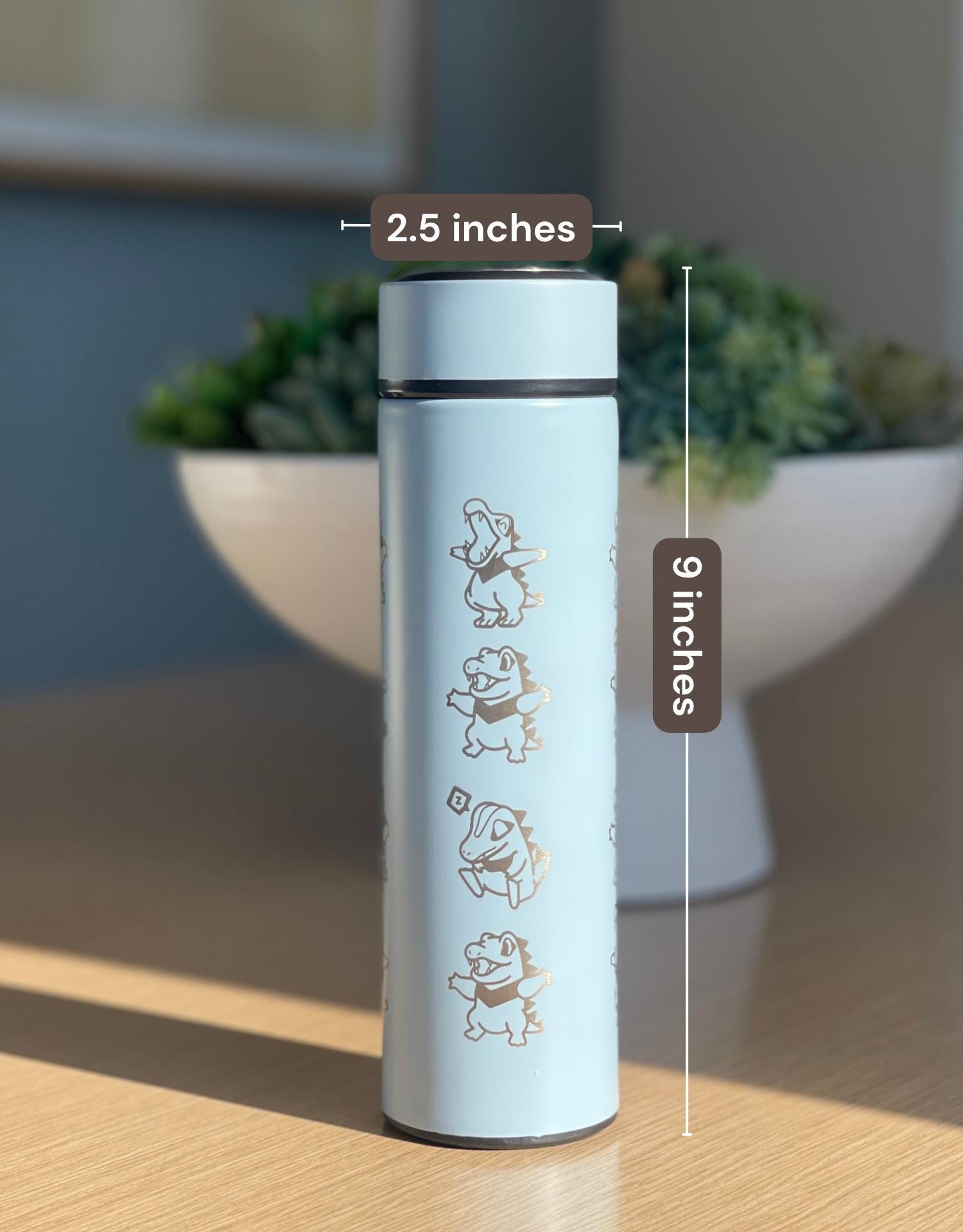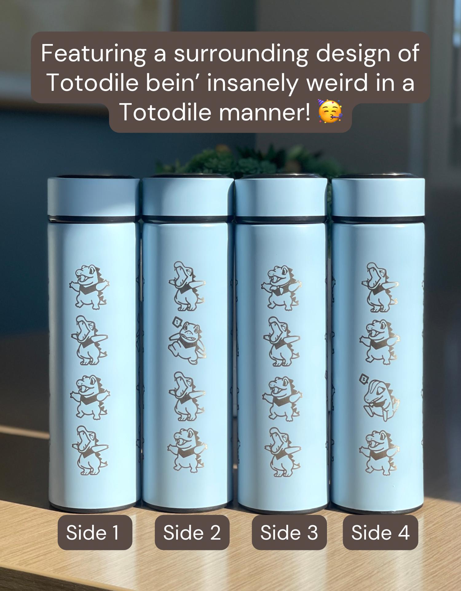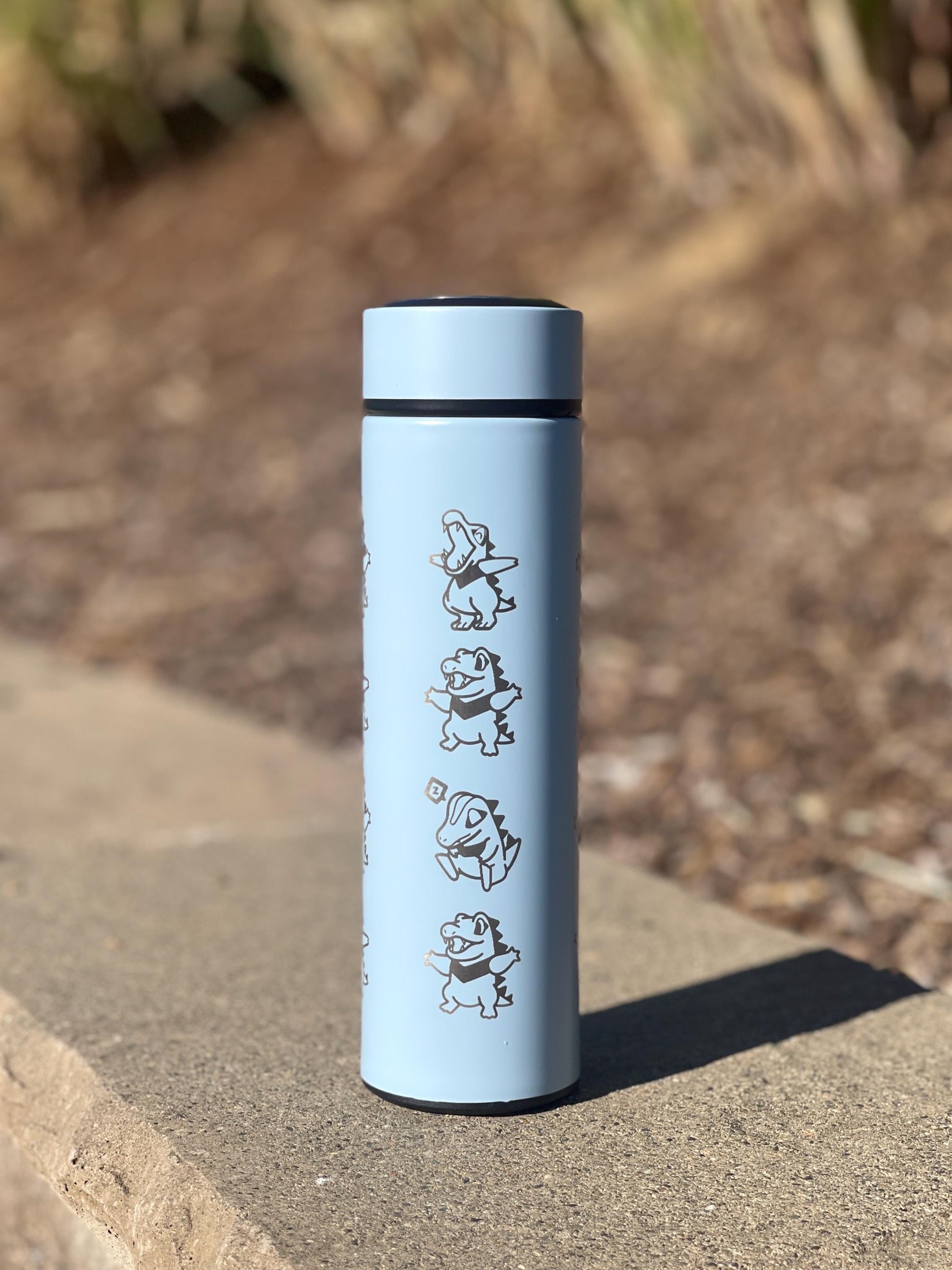 Totodile Coffee Tumbler, Engraved Water Bottle with Tea Infuser, Mystery Dungeon Scarf, Johto Legends ZA Starter Flask Anniversary Gift