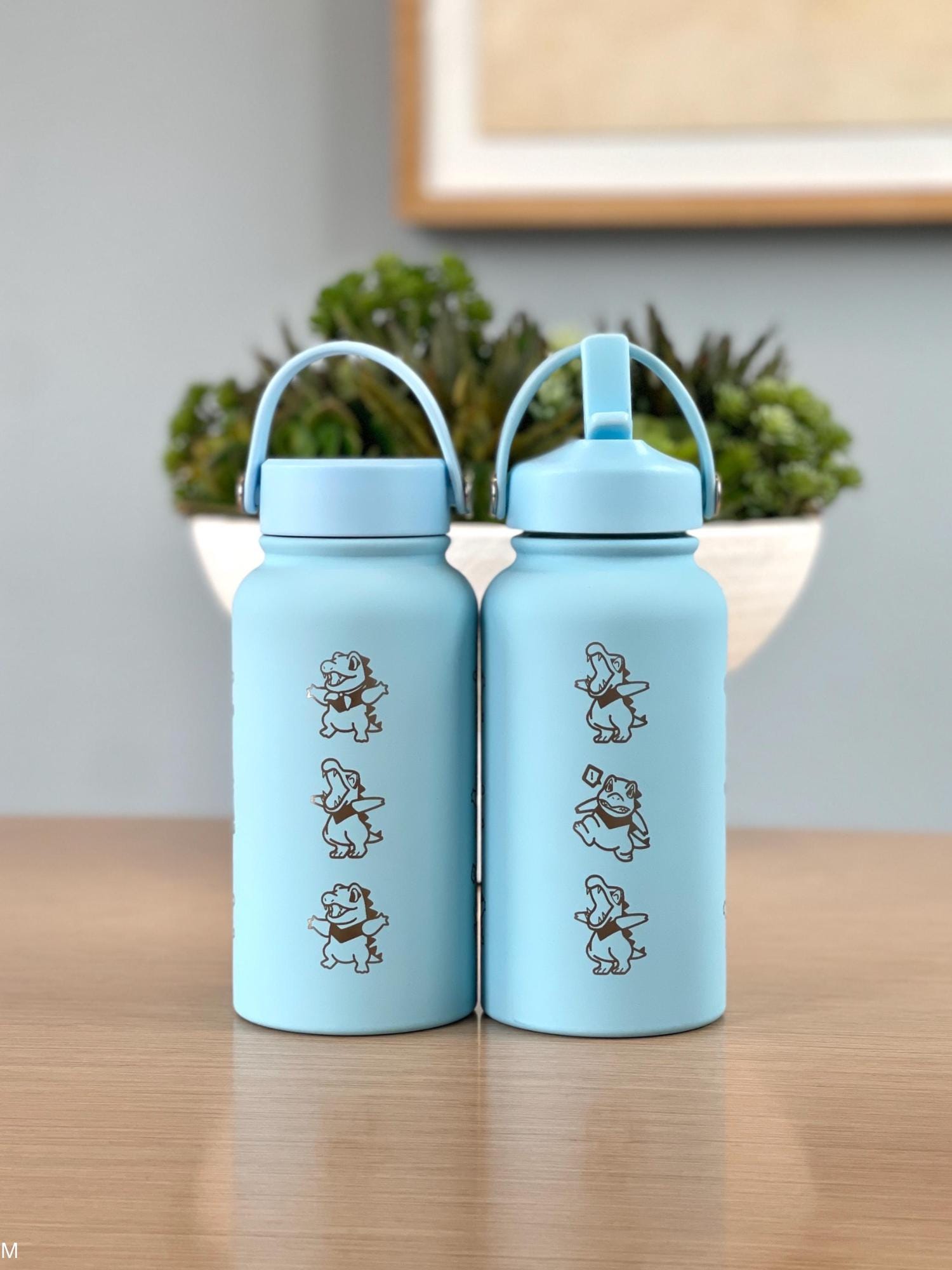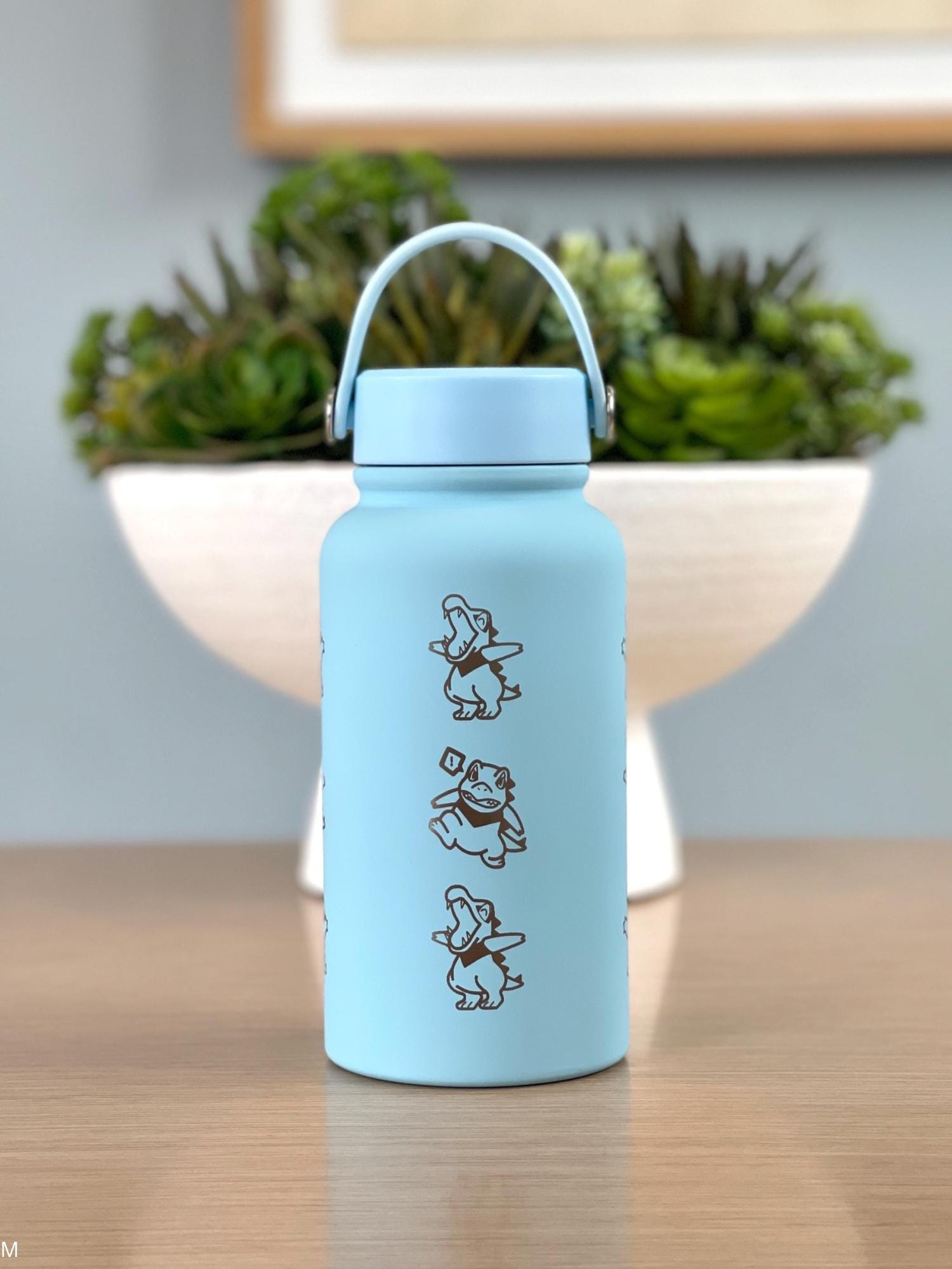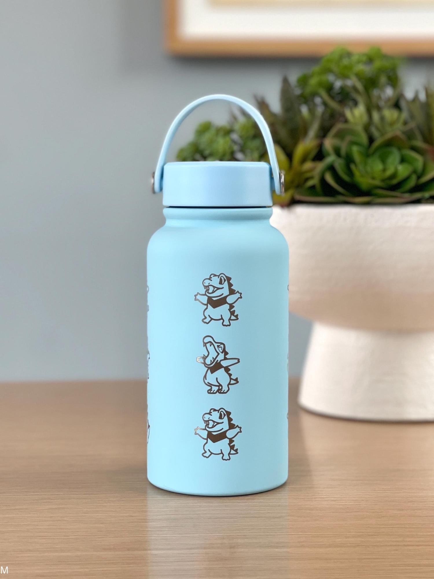 Totodile Water Bottle Engraved Coffee Tumbler with Mystery Dungeon Scarf, Johto Legends ZA Starter Waterbottle Travel Mug, Anime Fan Gift