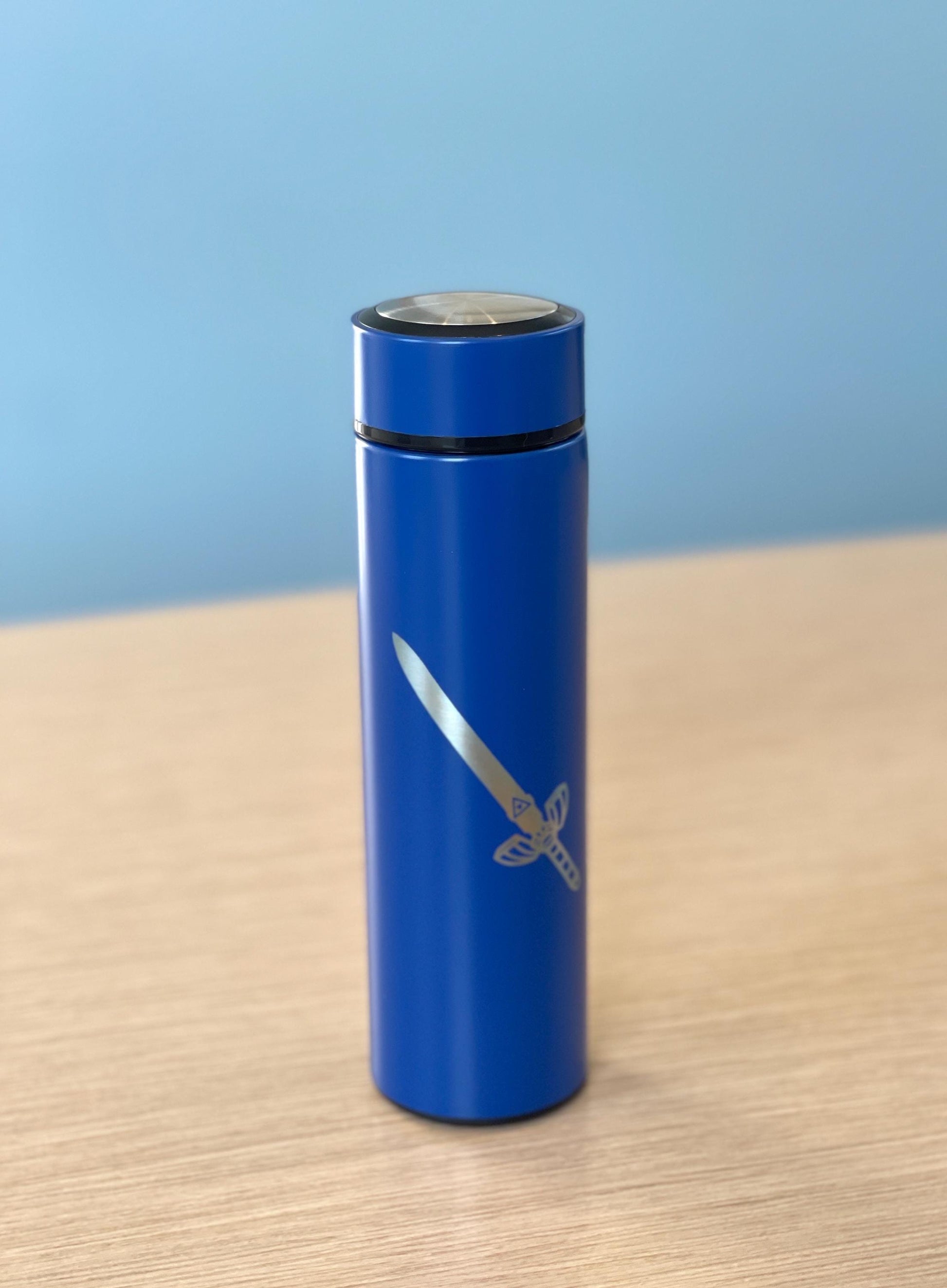 Check out our Legend of Zelda tumbler water bottle/travel mug featuring a laser engraved design of Link's Hylian Sword AND Shield! (from